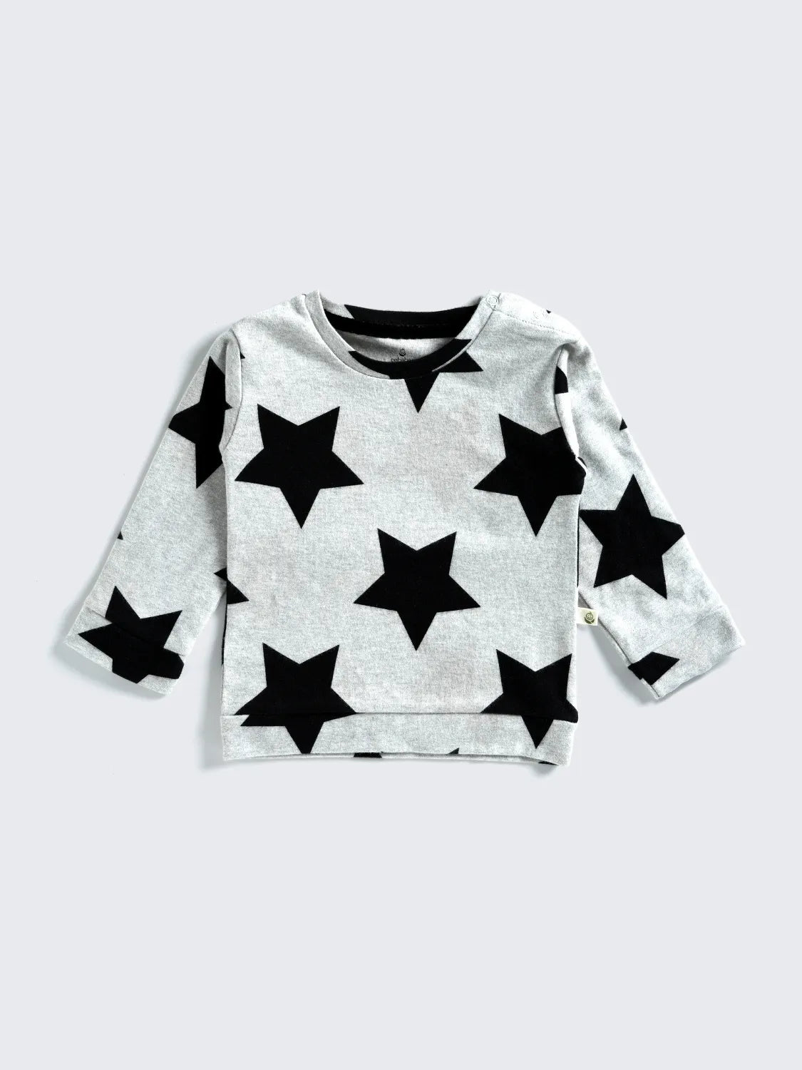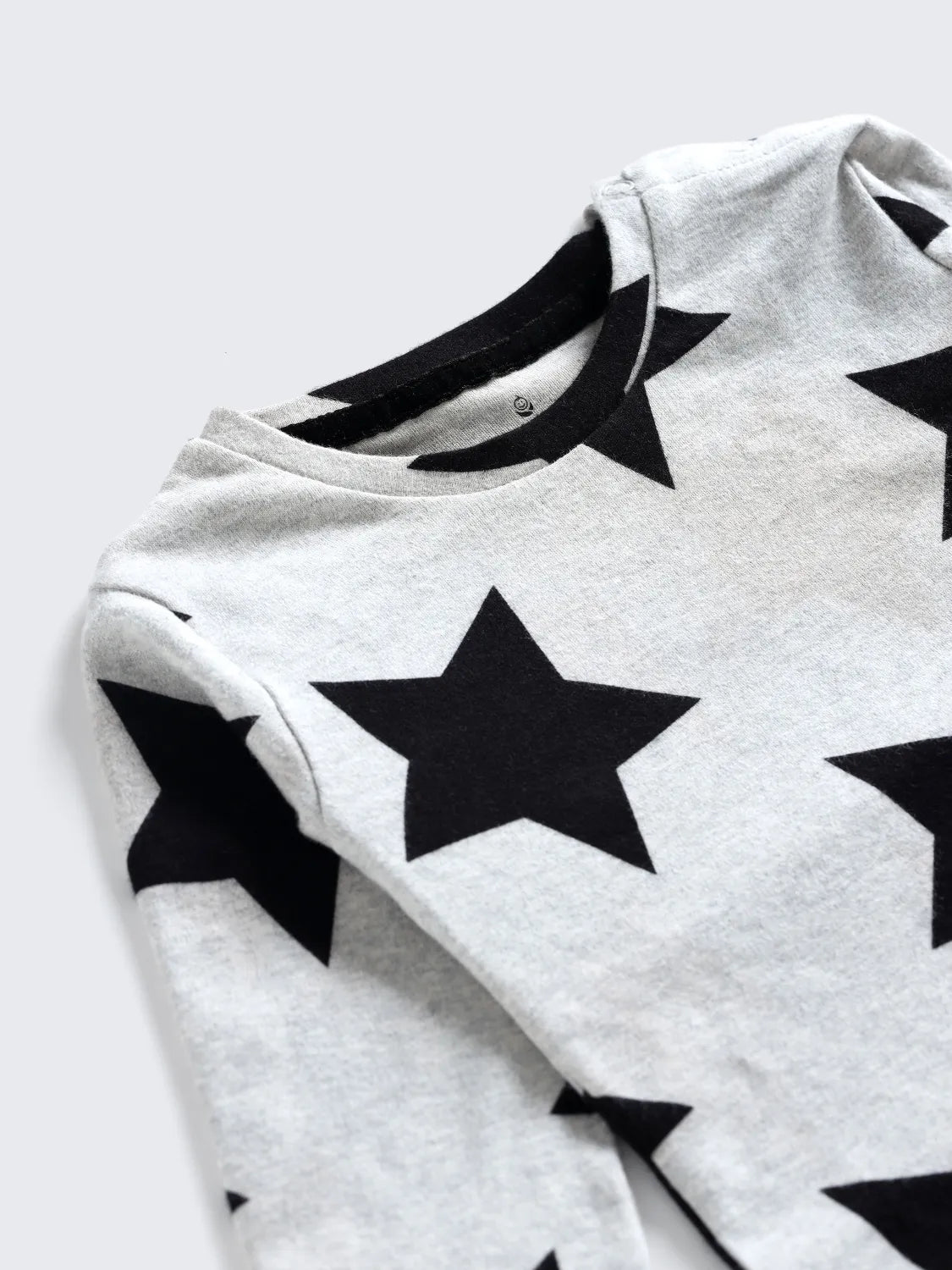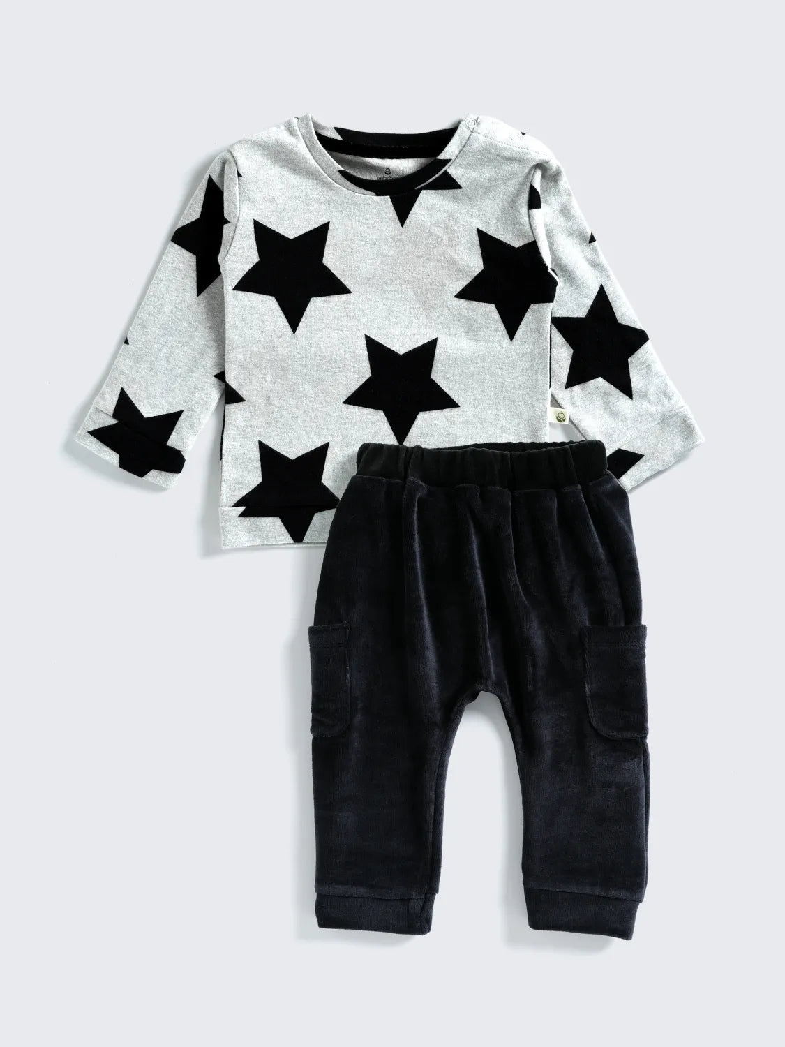 A stylish yet cozy outfit perfect for playful days and comfy evenings! The soft cotton full-sleeve top with bold star prints paired with velvety-soft pants gives your little one the perfect comfort-meets-style look. Designed with a stretchable waist and gentle fabric to support crawling, walking, snuggling, and everything in between.