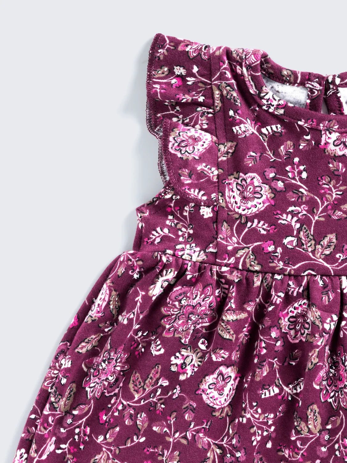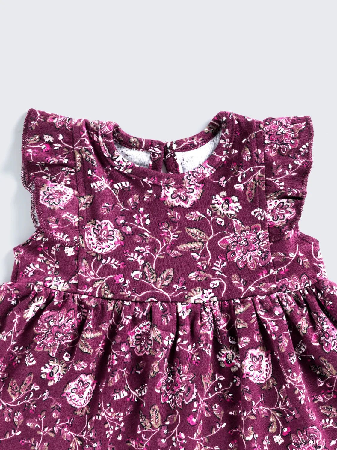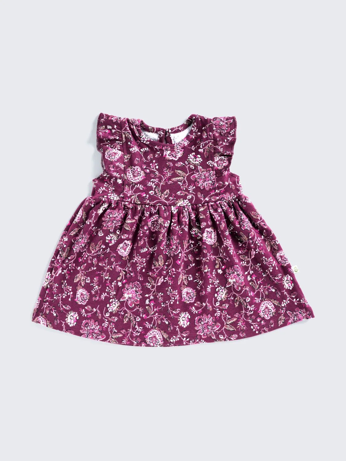 eebabee Plum Bloom - Floral Flutter Sleeve Baby Frock