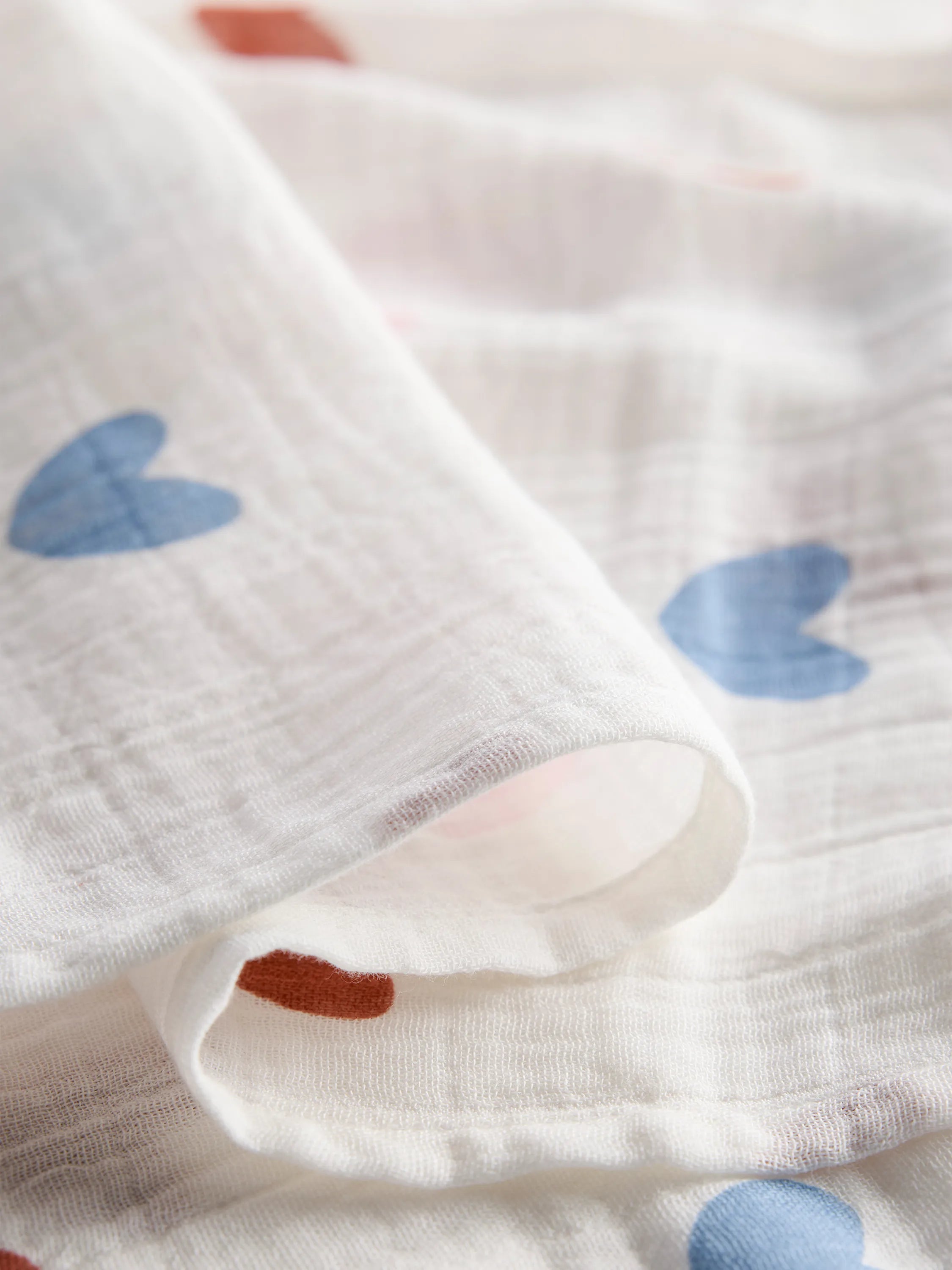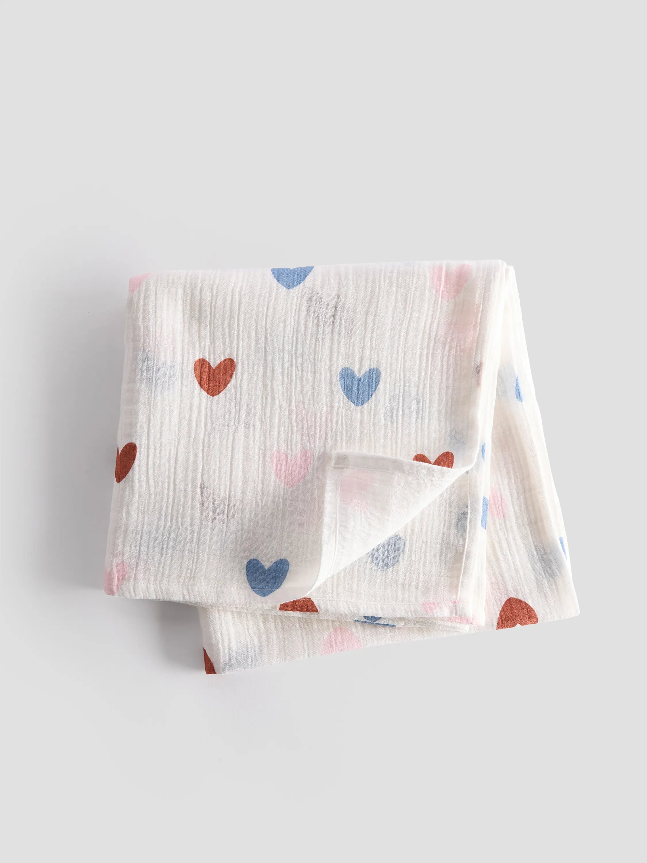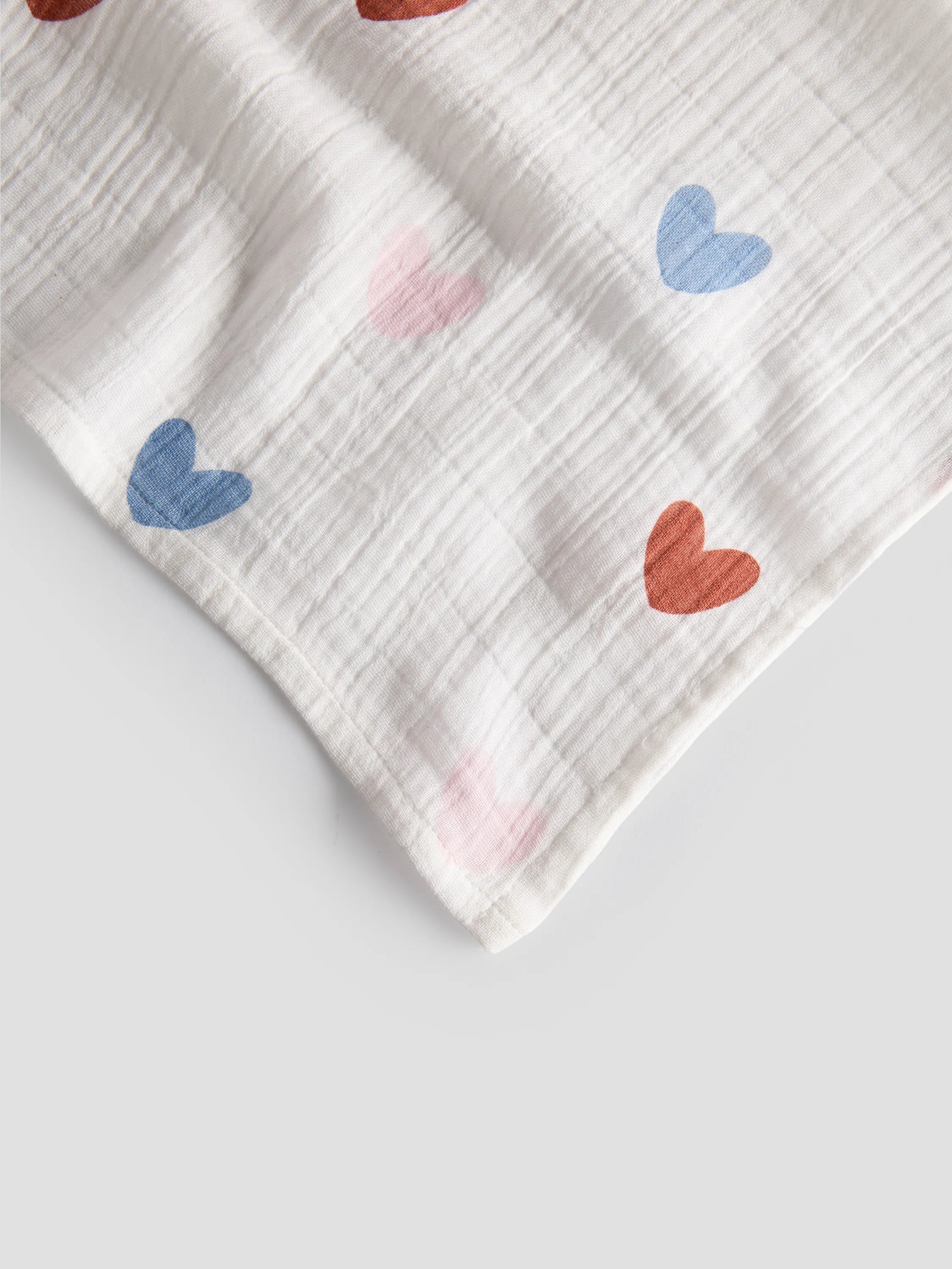 cozy bear Heart Print Organic Cottton Muslin Swaddle Blanket