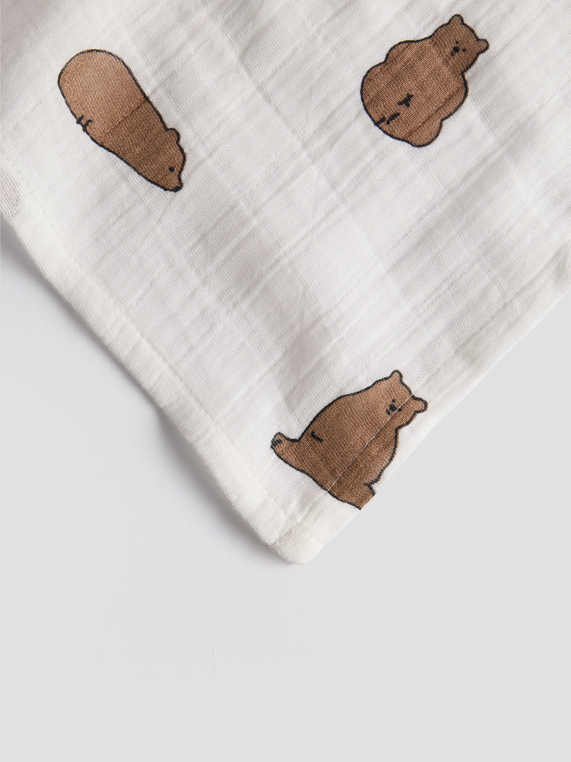 cozy bear Organic Cotton Muslin Blanket – Brown Bear Print