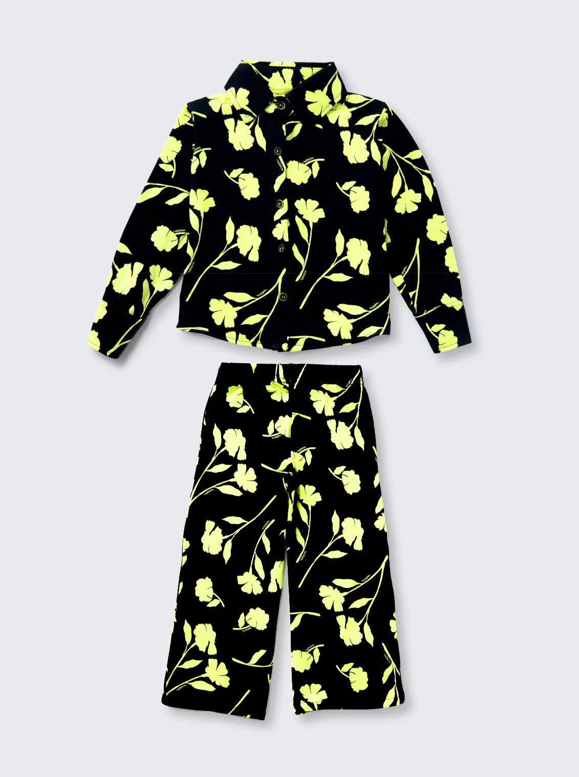 This vibrant co-ord set from eebabee is the ultimate trendsetter for stylish little divas aged 2 to 8. With a bold neon floral print on a rich black base, it's designed to stand out and make heads turn wherever she goes. Comfort meets fashion a must-have for her next day out!