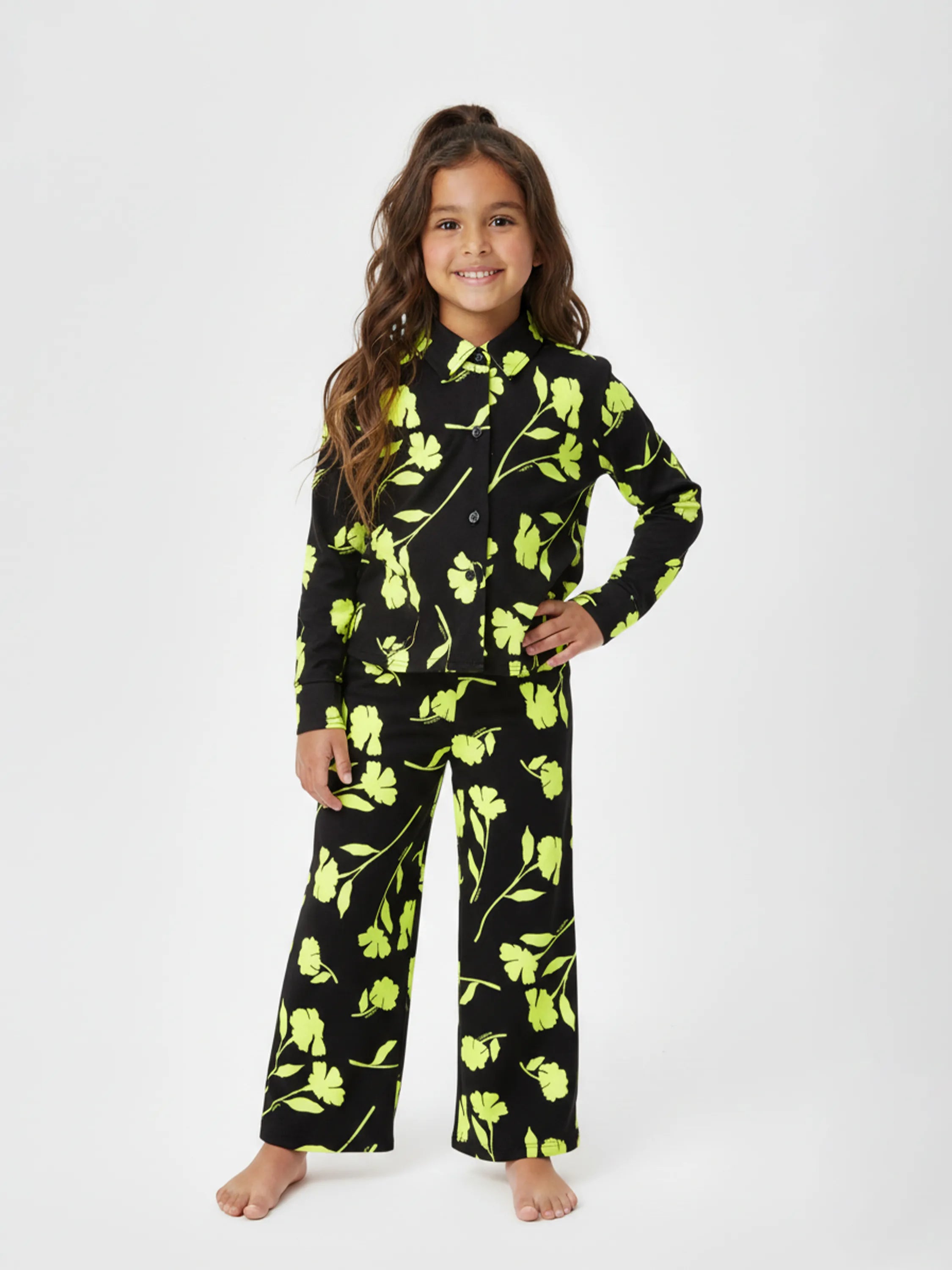 eebabee Girls Black & Neon Floral Co-ord Comfy Set