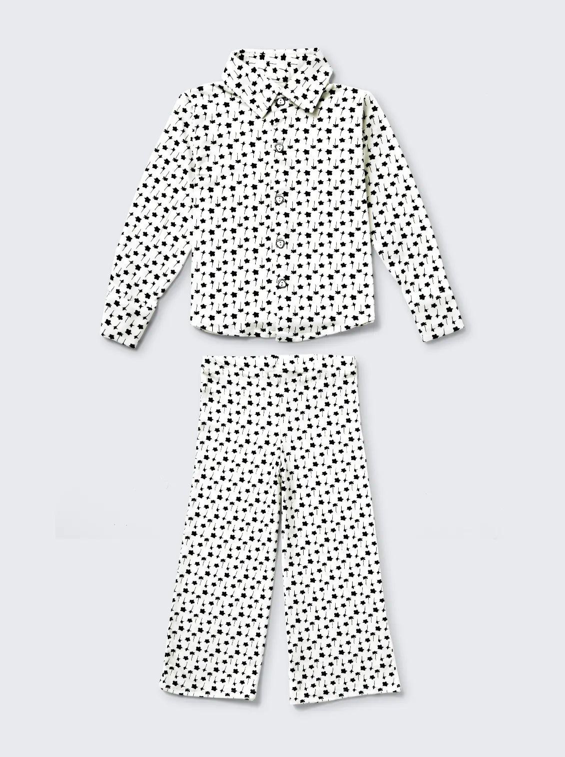 Trendy, comfy, and full of charm this floral print co-ord set is perfect for your little one’s everyday fun or weekend outings. Designed with a cute collared shirt and matching wide-leg pants, it brings effortless style and all-day comfort to her wardrobe.