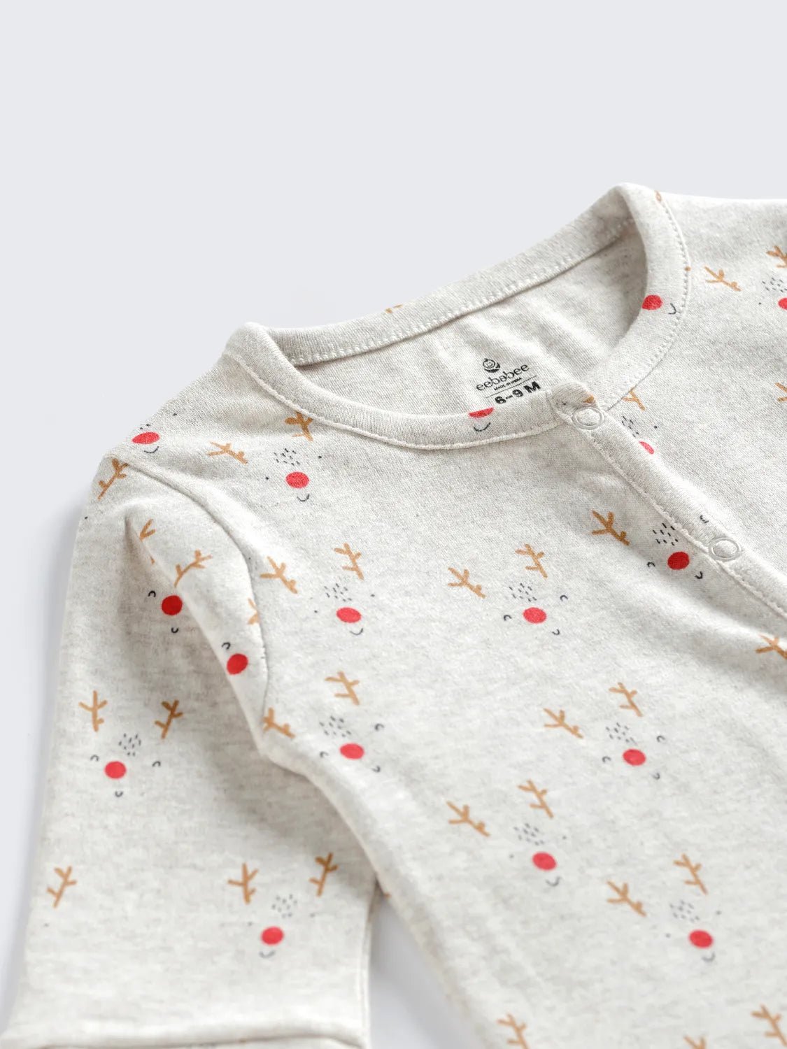 Wrap your little one in warmth and cuteness with this adorable reindeer-print sleepsuit from Eebabee. Designed for comfort, cuddles, and all-day play, it's the perfect everyday essential for babies who love to move, nap, and explore. Soft, breathable, and gentle on skin — just the way baby clothing should be.