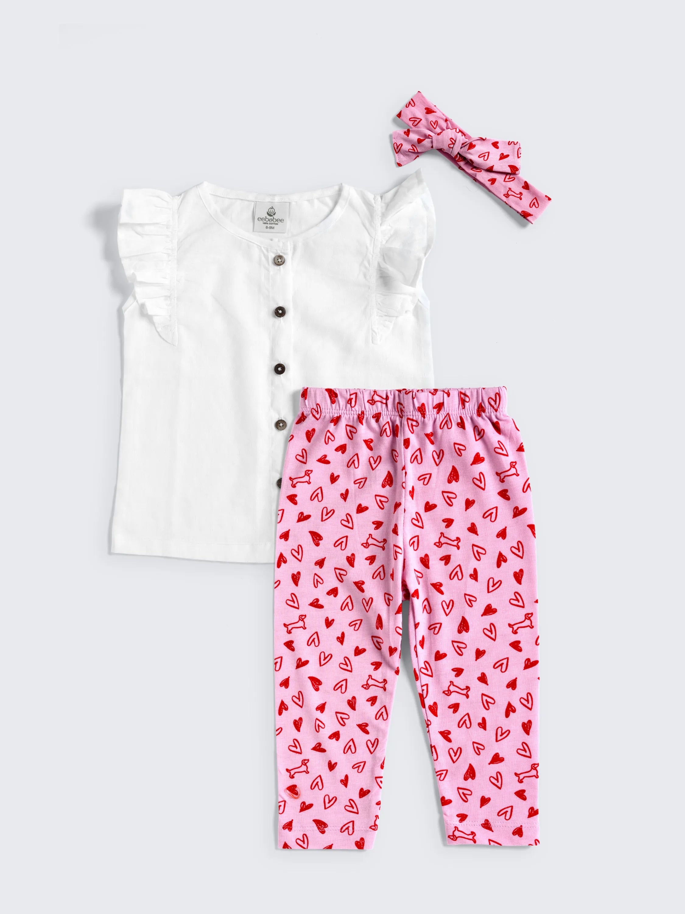 Ruffle Top with Printed Leggings & Matching Bow – Stylish and cozy