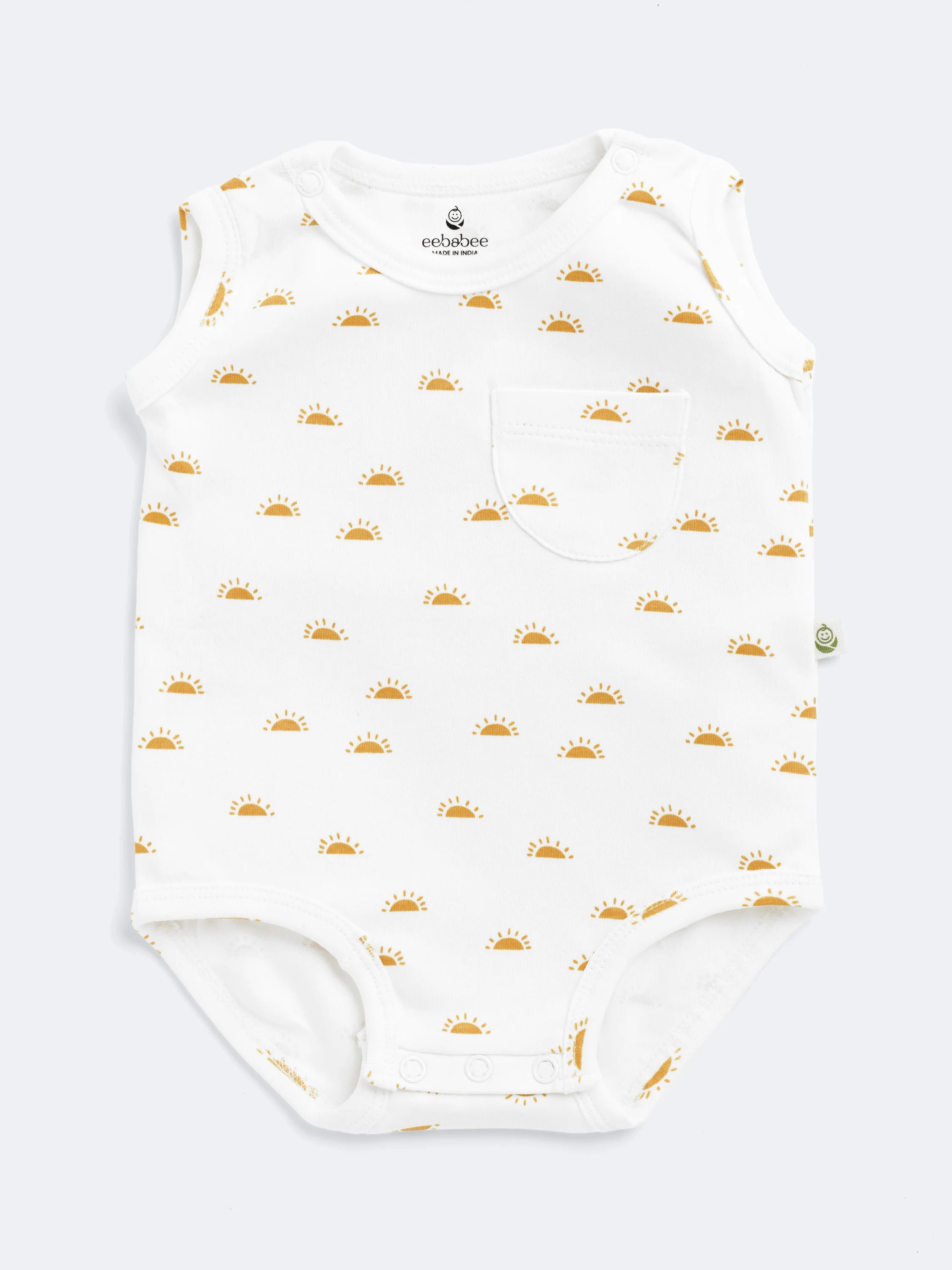 sleeveless bodysuit with happy sunshine print