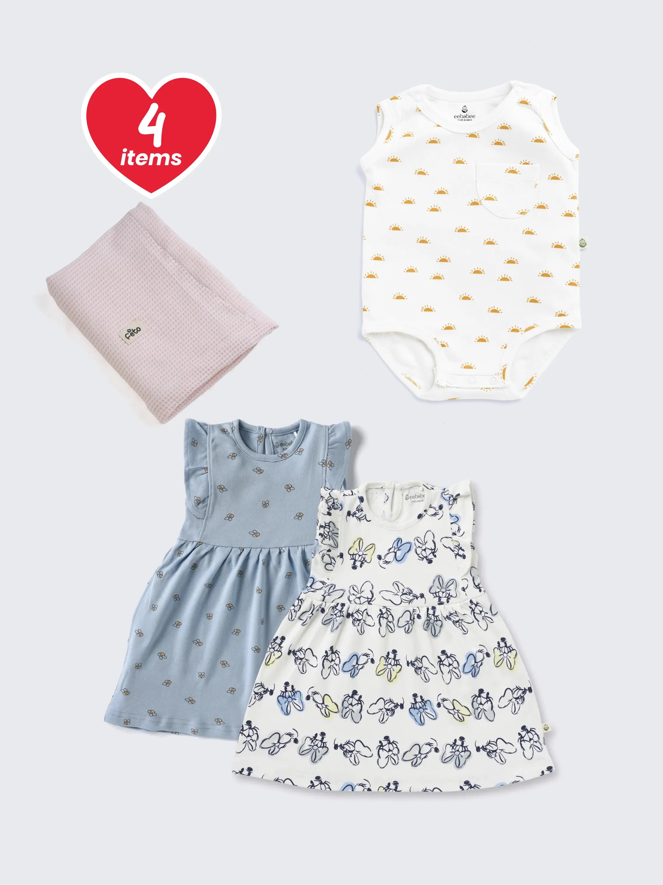 eebabee & feto Baby Girl Essentials – 4 Pc Gift Combo