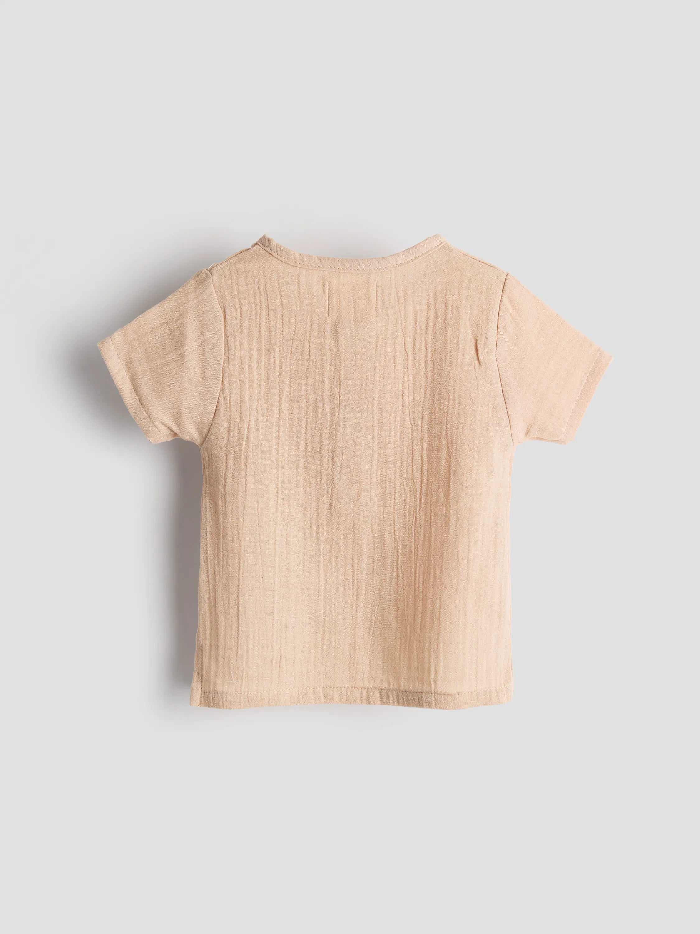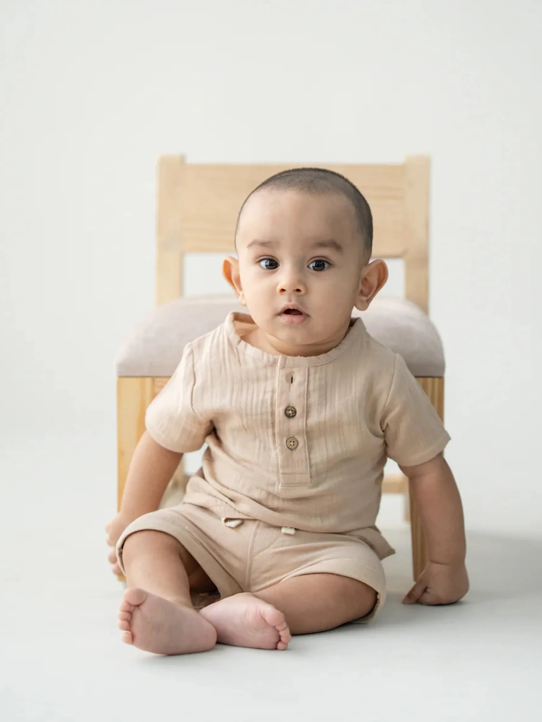 cozy bear Unisex Baby Beige Organic Cotton Muslin Co-Ord Set
